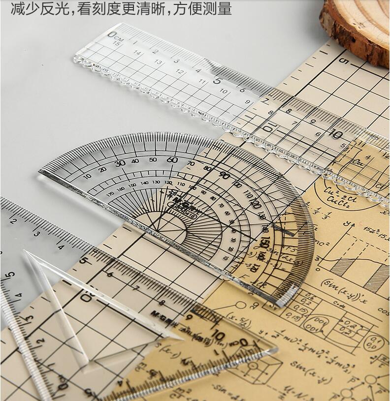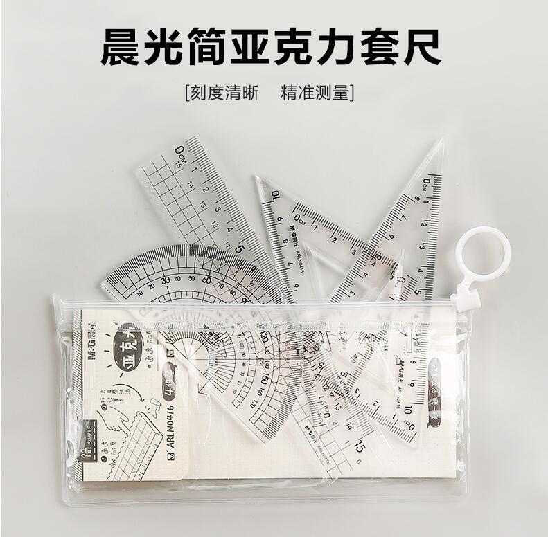 晨光文具 透明套尺 亞克力四件套15cm直尺三角板量角器學生用考試繪畫專用制圖測量隨身便攜多功能幾何工具